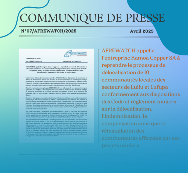 L’exploitation minière de la société COMMUS inquiète l’ONG afrewatch sur l’avenir de la ville de Kolwezi