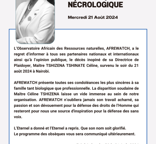 L’Observatoire Africain des Ressources naturelles, AFREWATCH, a le regret d’informer à tous ses partenaires nationaux